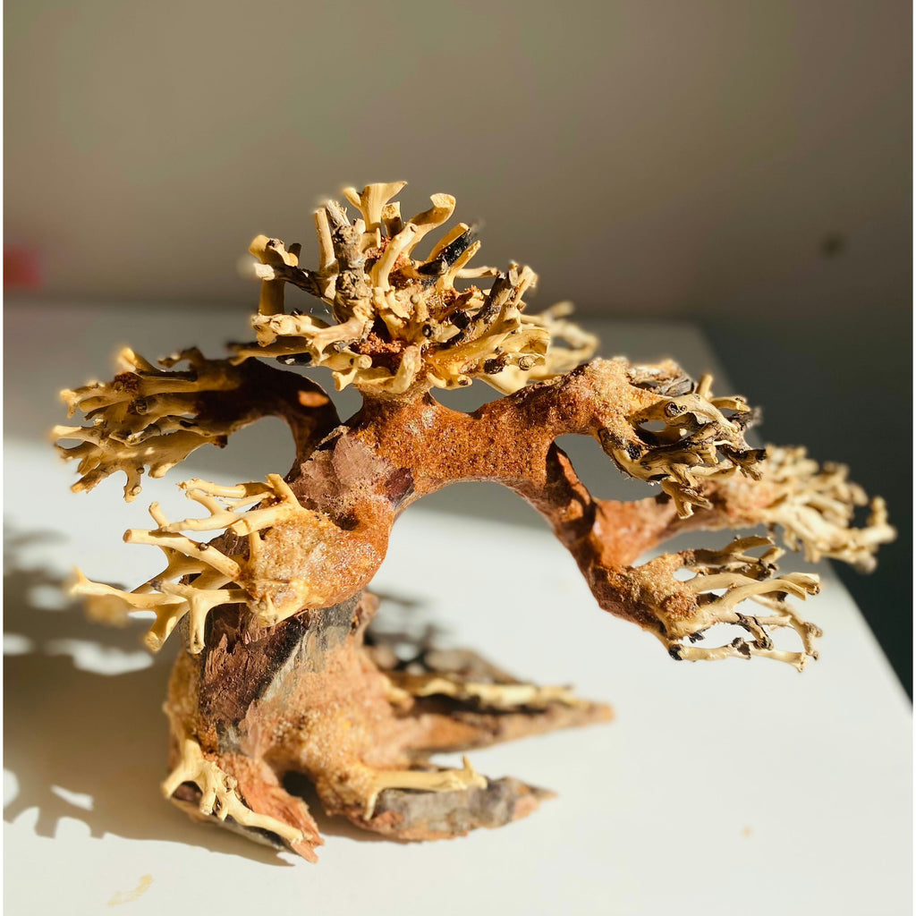These Bonsai driftwood trees are made by hand from natural driftwood that is aquarium safe and immediately sinks. Artisans create these underwater trees in a wide variety of shapes and sizes. The trees are ready to be placed in the aquarium and glued with aquatic moss to give it a tree-like appearance.