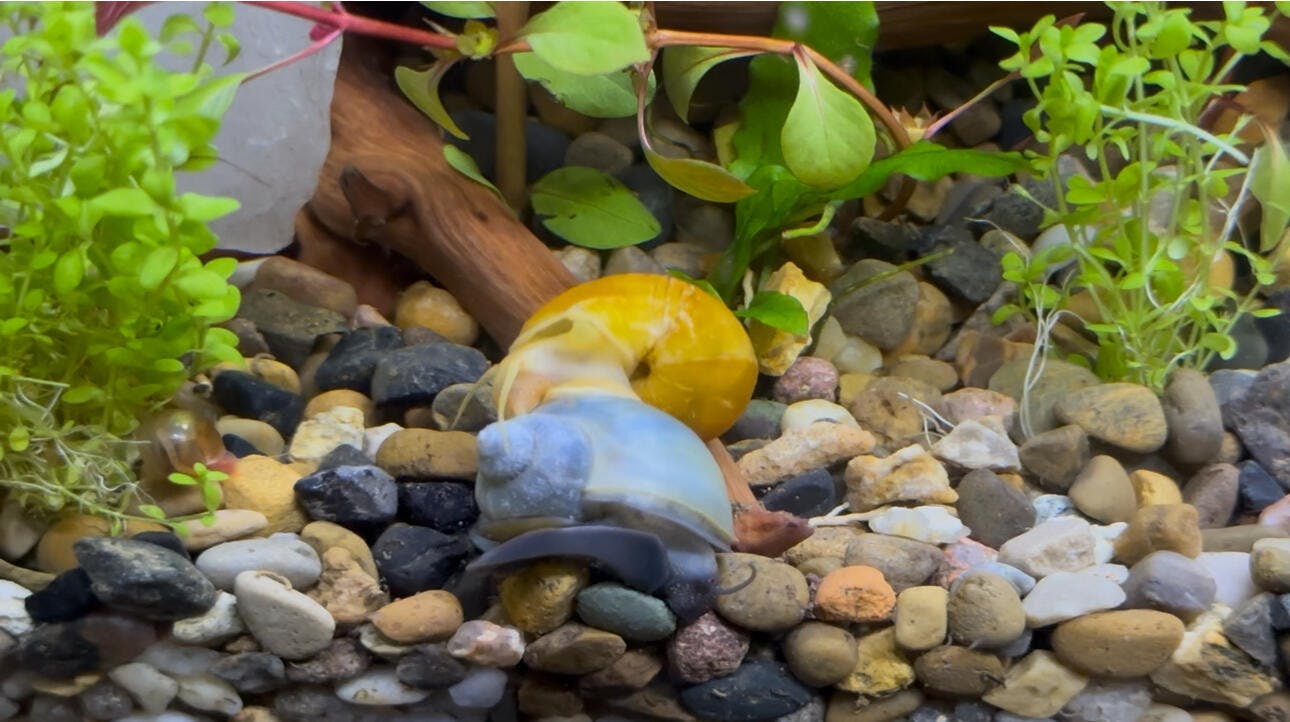 Don't keep Blue Mystery Snail juveniles with aggressive tank mates that may harm or stress them.